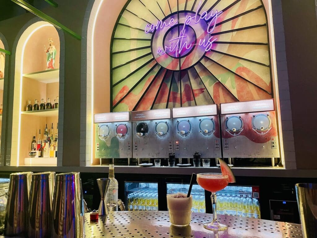 スタッフさんのお勧めカクテルは、下記の写真にある様なマシーンから現れるFROZEN MARGARITA🍸(特にマンゴーやココナッツ味)