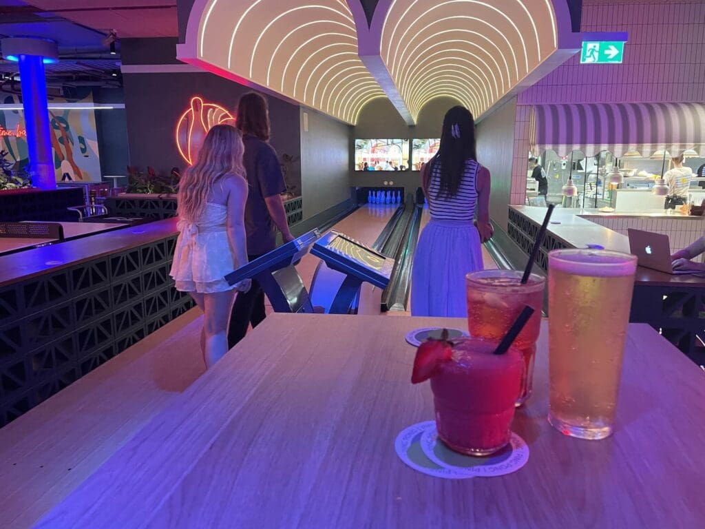 広い店内に入ると、え?レストラン?それともゲームセンター??バーの近くには、ボーリングが出来るレーン、プロジェクター形式のダーツ、ビリヤード、ピンポン(卓球)、フォトブース(日本で言うプリクラ)など、お酒を飲みつつ遊べるゲームがたくさん🤩