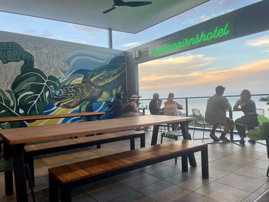 エスプラネード/ラグーン/ナイトマーケットのすぐ近く、アクセス抜群のOaks Cairns Hotelの最上階にあるレストラン&バー🍽