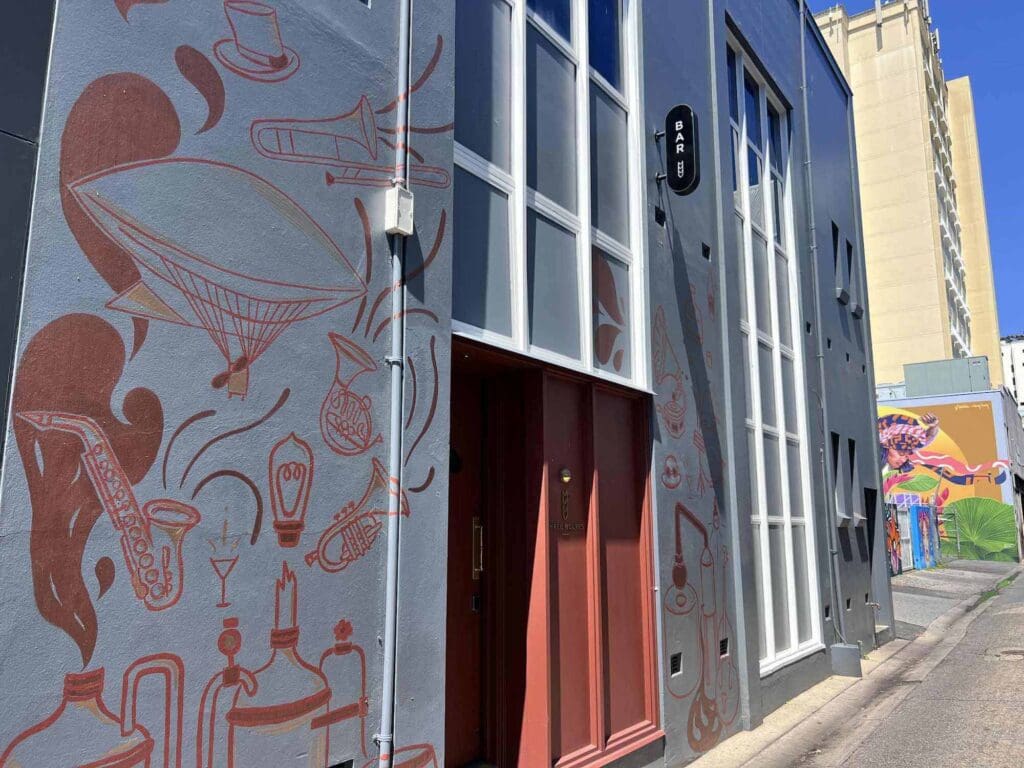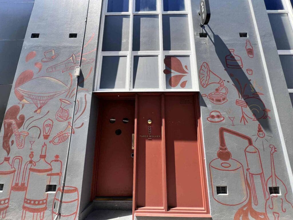 お店はスペンス通りに面していますが、入口は路地側からのアクセスになります。目印はこの壁紙🐺、この中で美味しいお酒が貴方を待っています😂