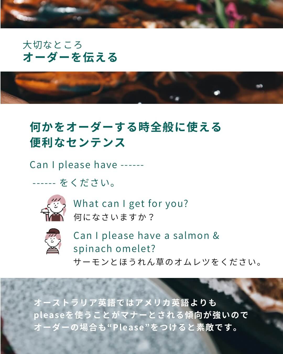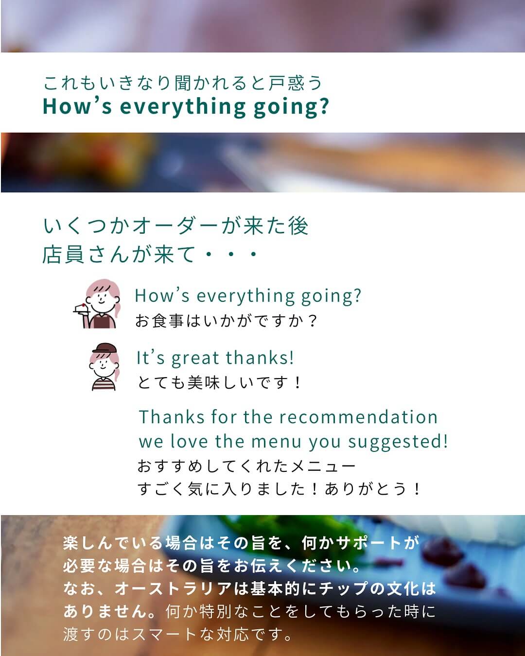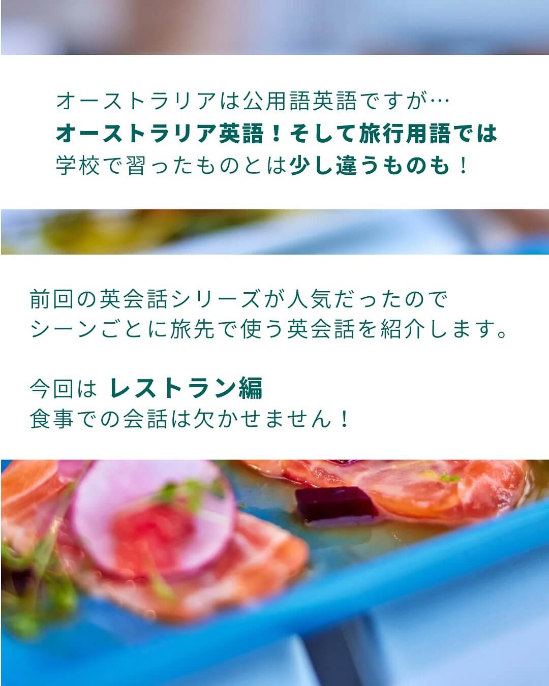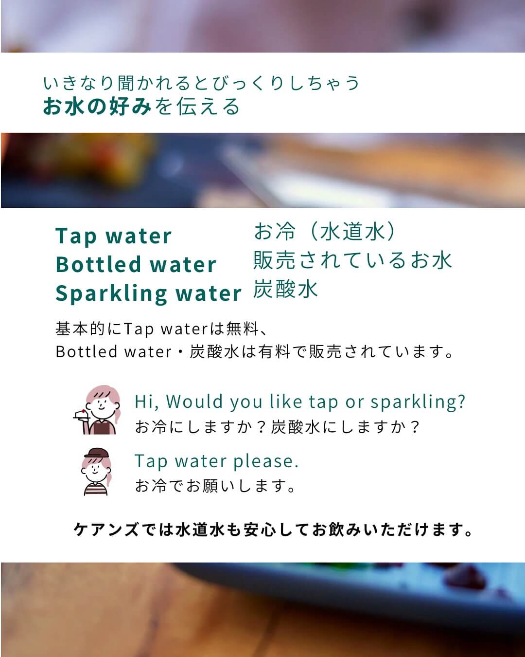 ケアンズでの時間をもっと楽しむために知っていると便利な英会話シリーズ。今回はレストラン編です。