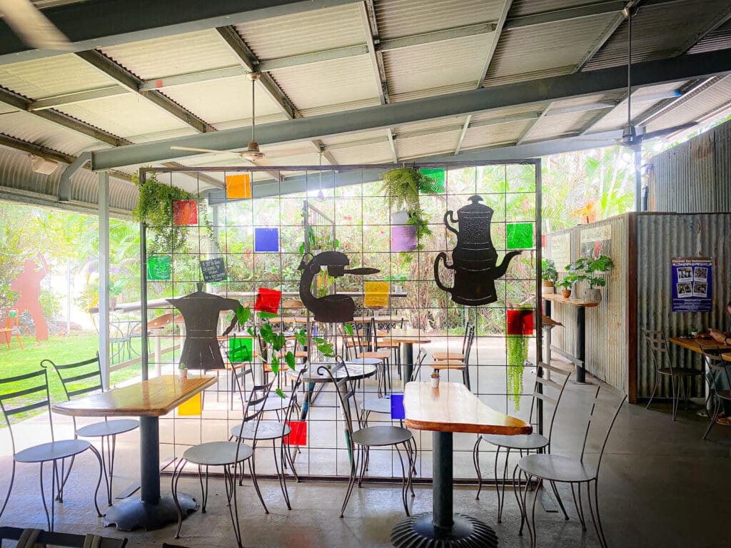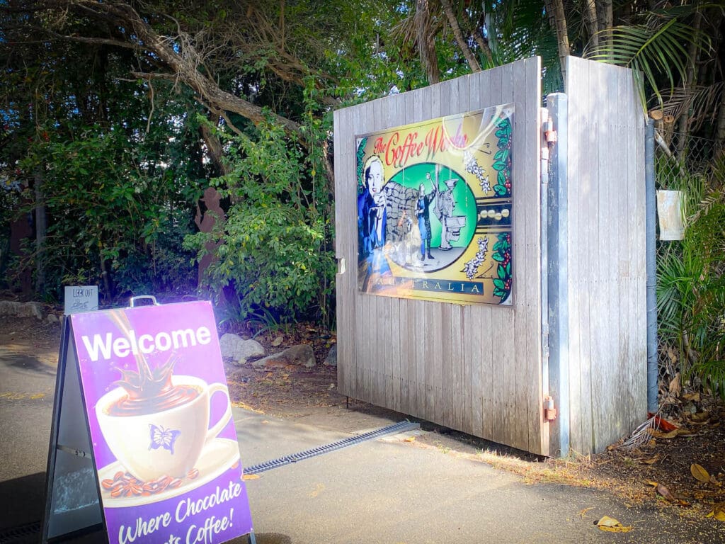 ケアンズから西へ約40km、車で1時間ちょっとの場所にあるマリーバの街。ここにコーヒー農園の直営店「コーヒーワークス(Coffee Works)」が佇んでいます。駐車場も広々していて、停めやすいのも嬉しいポイント。マリーバは、早朝開催している気球体験に訪れる人も多いので、気球に乗って大自然を満喫した後に同店に立ち寄ることもできます。